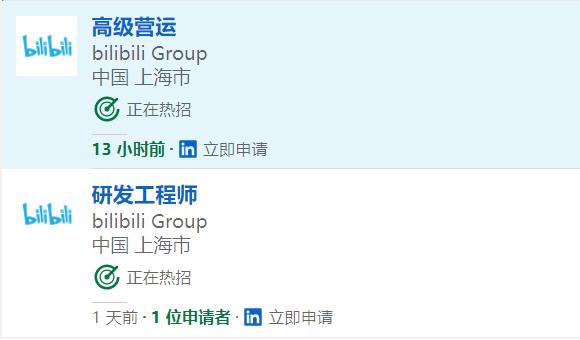 与此同时,B站领英主页也放出了两个热招岗位,包括高级营运和研发工程师。