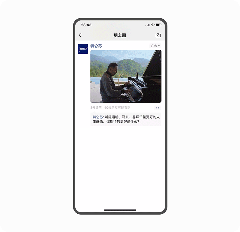 通过在互动形式上对明星价值持续挖掘,粉丝也能通过朋友圈评论、视频弹幕等方式相互分享和讨论,而社群氛围的形成也将使粉丝更容易参与到广告信息传播和购买转化中去。如果仅依靠传统操作,那么产出的只是一支制作精良的TVC;但在腾讯广告全流量的创新模式下,它就不止步于首次的精准分发,更实现了二次社交转发。