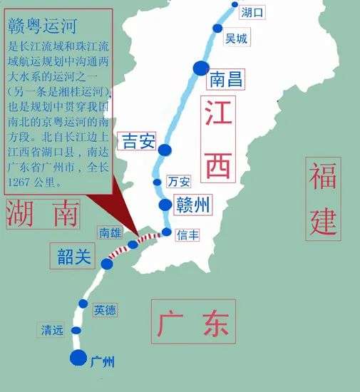 由于长江水系和珠江水系间最接近之处仅相距9公里,这一天然地理条件,使得打造赣粤运河的构想很早就已萌发。