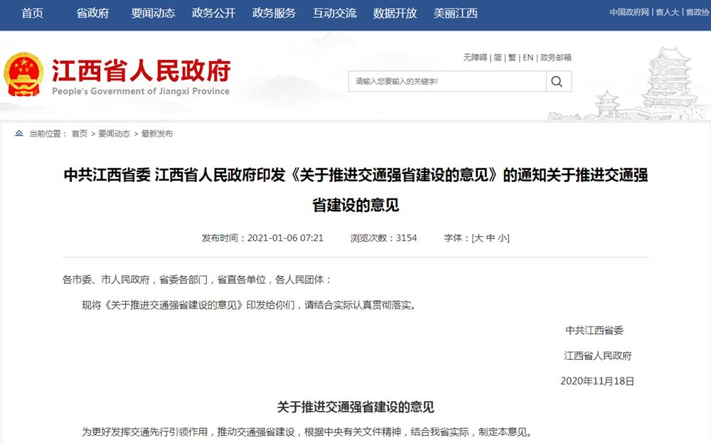不久前,江西省委、省政府印发《关于推进交通强省建设的意见》(下称《意见》)。同一天,江西开年“第一场重要推进会”——全省推进交通强省建设动员大会召开。