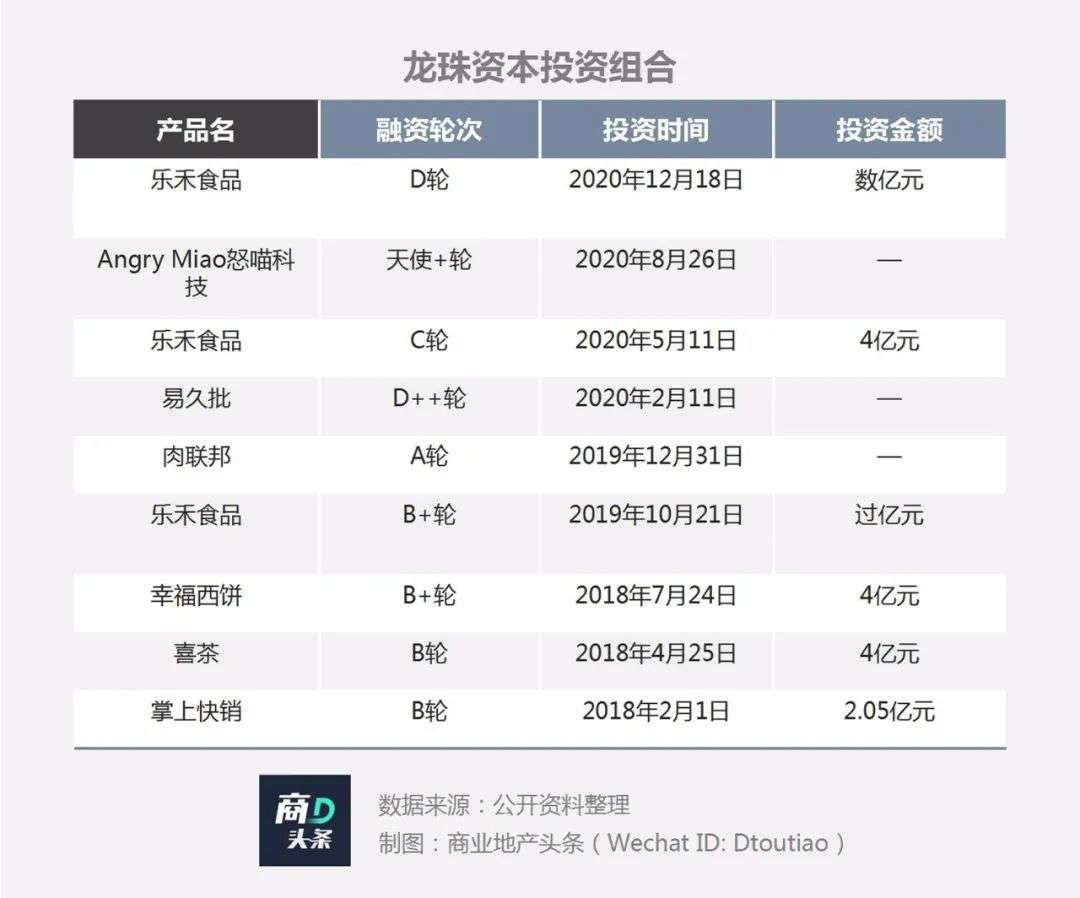 龙珠资本聚焦以餐饮为主的品牌和供应链,目前其先后投资过的标杆品牌有喜茶、幸福西饼、谊品生鲜、古茗奶茶,还有乐活食品、肉联邦、易久批等公司。