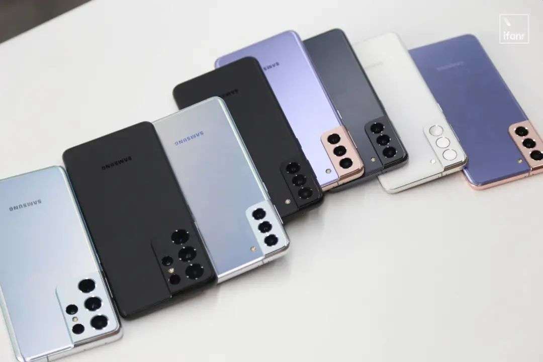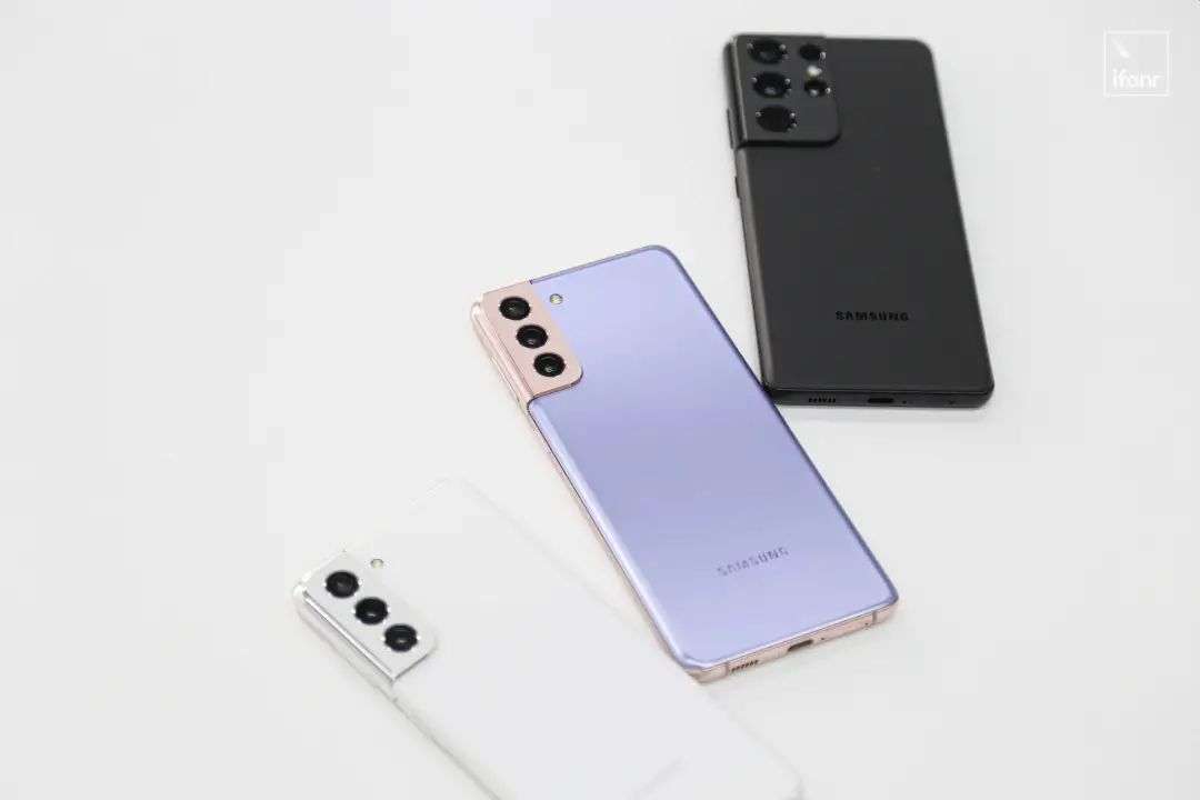在配色方面,S21 和 S21+ 都有三种配色,S21 分别是白色、紫色、黑色,S21+ 则是紫色、黑色、银色。而 S21 Ultra 则只有黑色和银色两种配色。