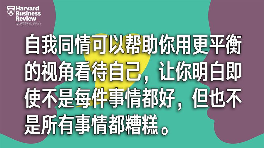 ● 了解自己的负面行为模式。自我同情通常需要首先了解自己的负面行为模式。我自己会在焦虑的时候拼命工作,然后把其他人卷进来,用自己焦虑之下的高标准要求别人,把别人逼疯,这种模式对我的职场人际关系造成了影响。了解自己的负面行为模式,自我同情可以帮助你直面自己的问题,在下次意识到自己陷入这种模式的时候有意识地做出更好的选择。这种情况下,富有同情心的自我对话可以是这样的:吹毛求疵是因为我想把握控制权,有控制感能让我平静,所以我的想法是可以理解的。我需要考虑全局,从战略角度思考,这样会在总体上让我感觉更好。