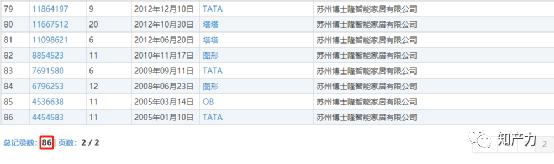 例如,苏州博士隆名下使用在第9类“电铃按钮、电门铃、防盗报警器、警笛”商品上的第11864197号“TATA”注册商标,和使用在第7类“厨房用电动机器、制食品用电动机械、磨革机、犁”商品上的第26932314号“TATA”注册商标,也分别遭到北京闼闼同创的无效宣告申请。