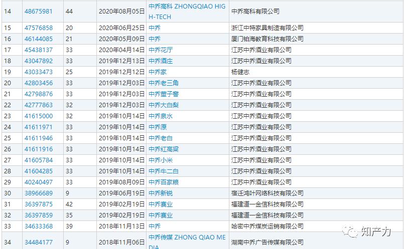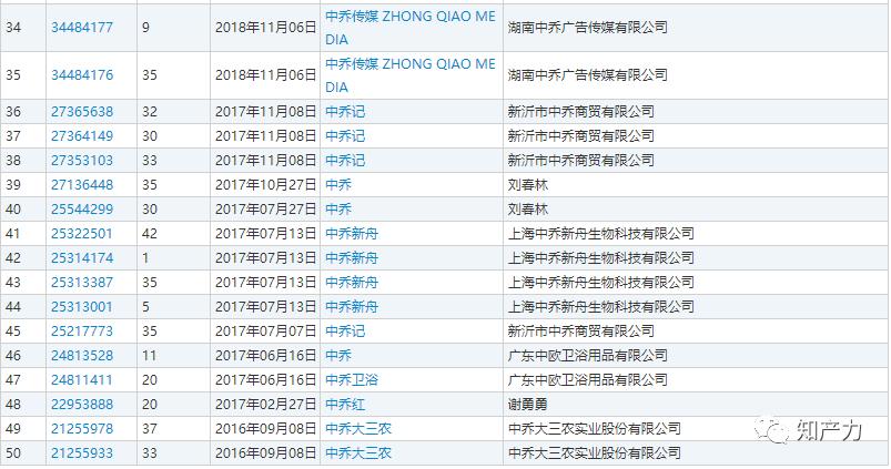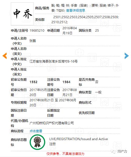 值得一提的是,改名为中乔体育的乔丹体育却没有申请“中乔”商标。