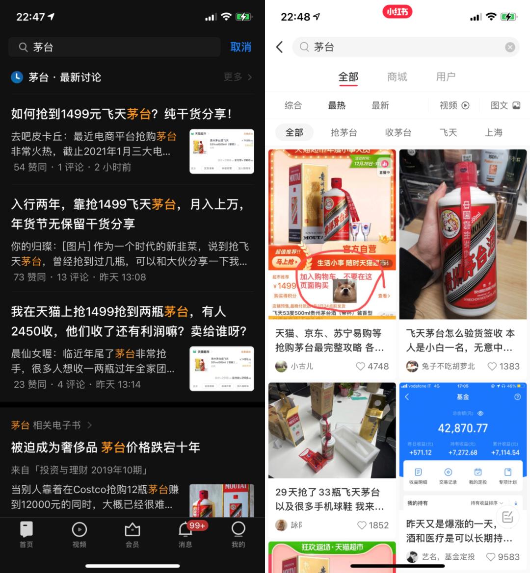 而由火热的球鞋市场衍生出的“全民皆贩”,更使得茅台成为了各电商平台眼中与 iPhone 等同的引流利器。小红书、知乎等平台诞生了大量的茅台抢购技巧,更不乏各类交流、代抢社群: