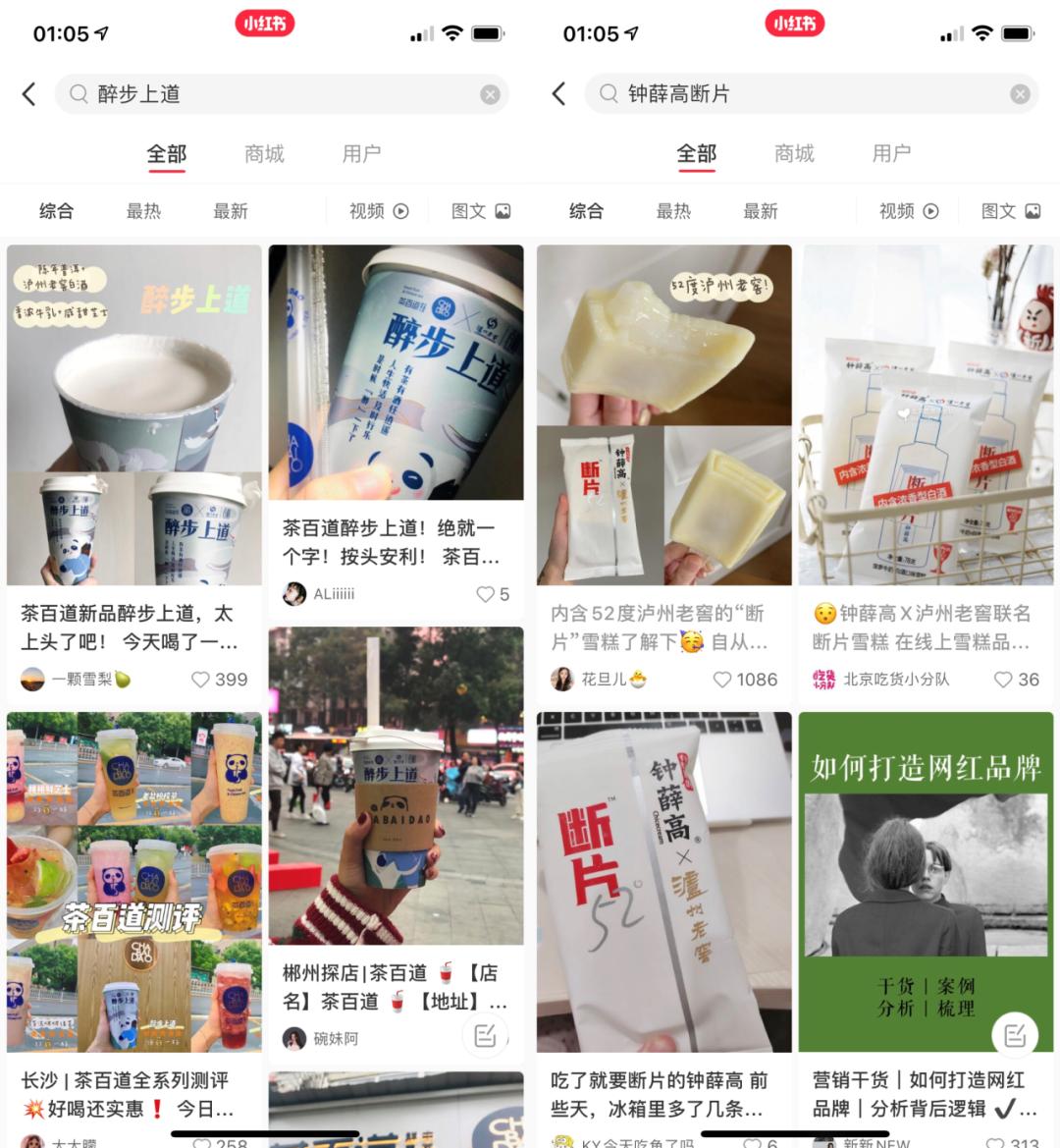 而起家于成都的茶百道的 2020 年爆款“醉步上道”,更会强调加入了 0.3g 的泸州老窖;而后者在 2019 年与钟薛高合作的“断片”雪糕,也收获了一众年轻人打卡: