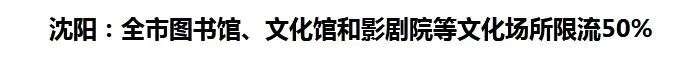 面对冬季疫情,各地也针对实际情况出台了细致的防控措施。北京、湖北、江苏、浙江等多个省市地区发布通知重申严格按照75%限流开放影院等室内公共场所。沈阳则在1月5日宣布将按照50%的限流比例在全市图书馆、文化馆和影剧院等文化场所实行。