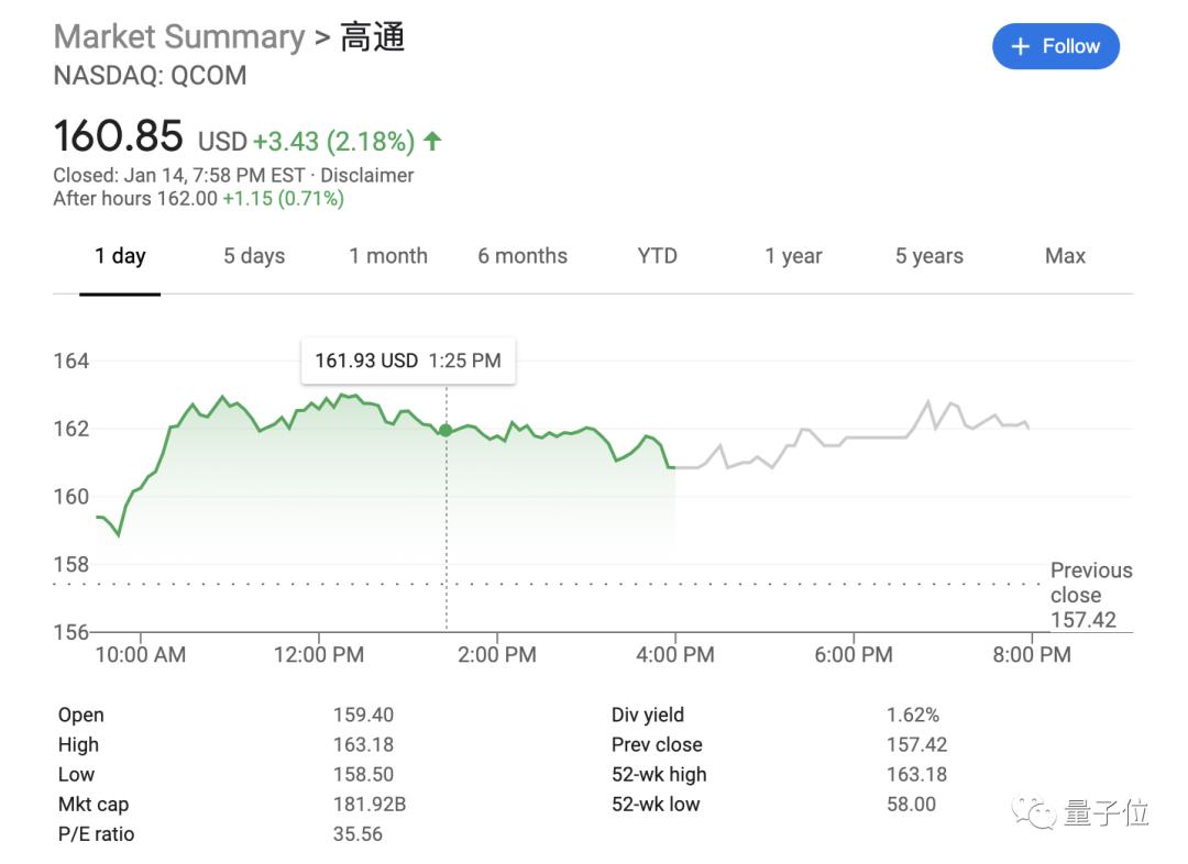与小米紧密联系的高通,股价尚未出现明显的波动。