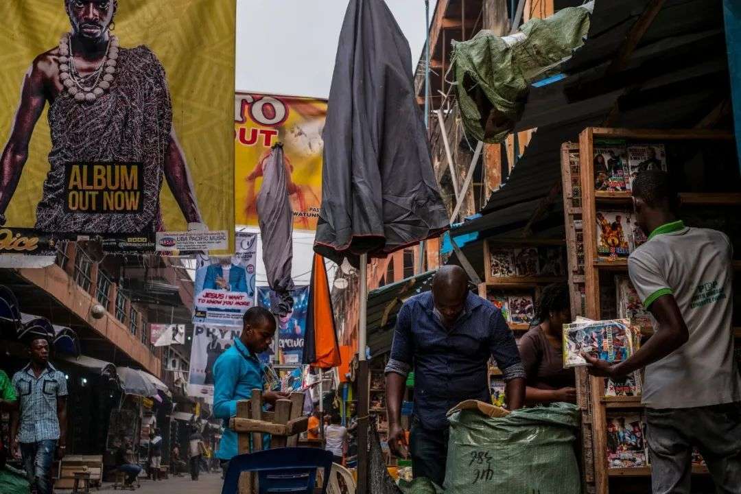 在尼日利亚拉各斯的市场中,可以买到大量盗版音乐,来自《纽约时报》
