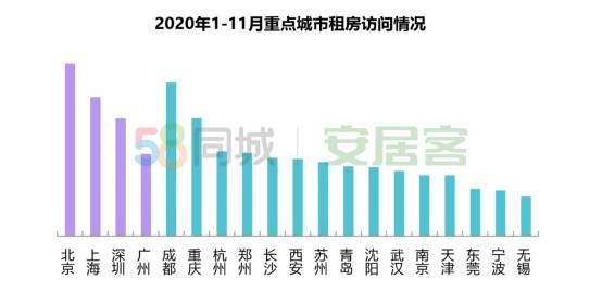 2020年12月23日,58同城、安居客联合发布《2020年中国住房租赁市场总结报告》,报告显示,在重点监测的19个城市中,成都租房需求量仅次于北京,位居第二。