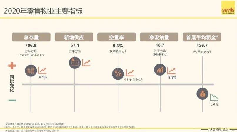 1月8日,第一太平戴维斯发布《成都2020年房地产市场回顾及未来展望》,报告显示,2020年,成都零售市场迎来57万平方米的新增供应,是2019年全年供应量的2倍有余,将全市零售物业总存量推升至707万平方米。2020年,成都共计有6个购物中心开业,供应量创近三年新高。