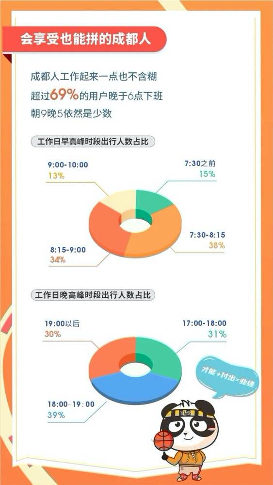 2020年的各种报告显示,成都人的早高峰是7:30到8:15,并且有69%的上班族在下午6点之后下班。成都人上班时候点外卖的能力和深圳、上海差不多,比北京要低,并且成都人今年最爱点的是鸭脖。2020年成都租房需求量仅次于北京,位居第二,房价约在30元每平方米每月。