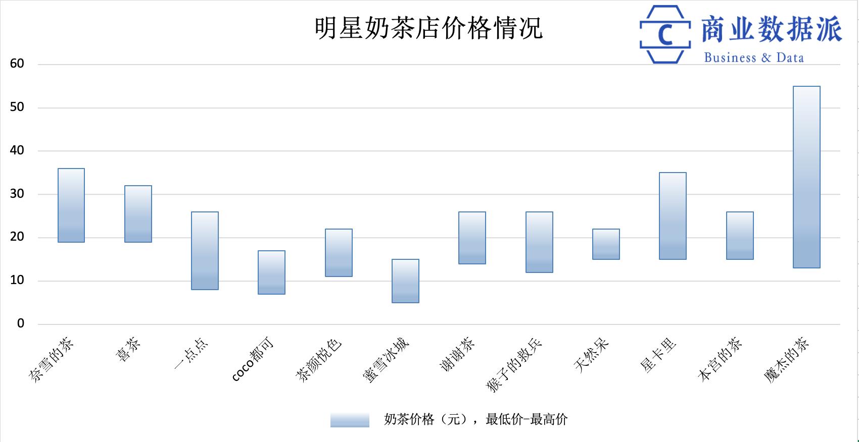 蜜雪冰城单店投资加盟费最低只需7000元,最高规格的省会城市也不过1.1万/年,而魔杰的茶也好、天然呆也罢,明星奶茶店的加盟费都没有低于10万的档,价格相差约10倍。