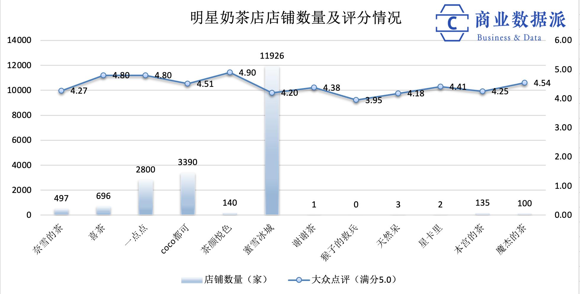 喜茶、一点点店往往都在4.8左右(满分5分),主打低价的蜜雪冰城评分也都稳定在4.2以上,其中不乏超过4.5的优质分店。这其中的关键就是“性价比”二字——什么样的价位对应什么样的产品品质和服务。