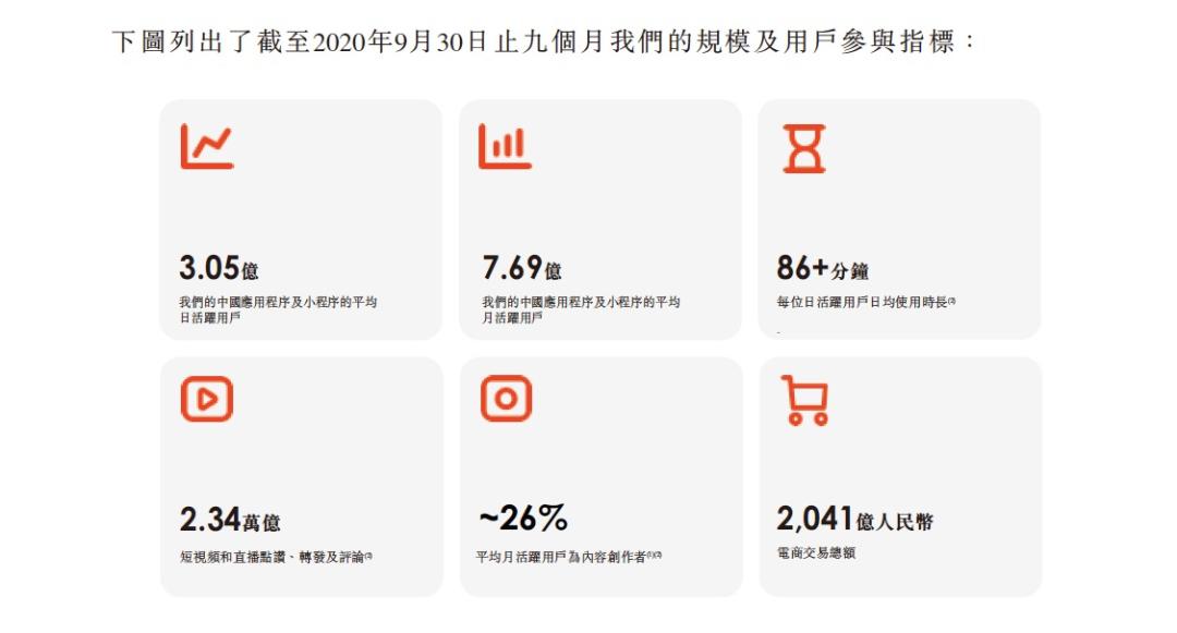 根据快手1月15日更新的招股书,快手电商2020年上半年交易额1096亿,第三季度则为945亿,前9个月累计2041亿。