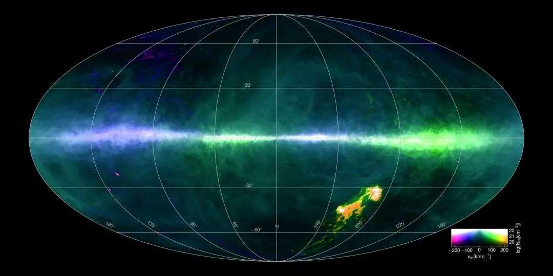 星系中的氢元素除了形成恒星,还有一部分会剩下来,以中性氢原子形式存在,称之为中性氢。