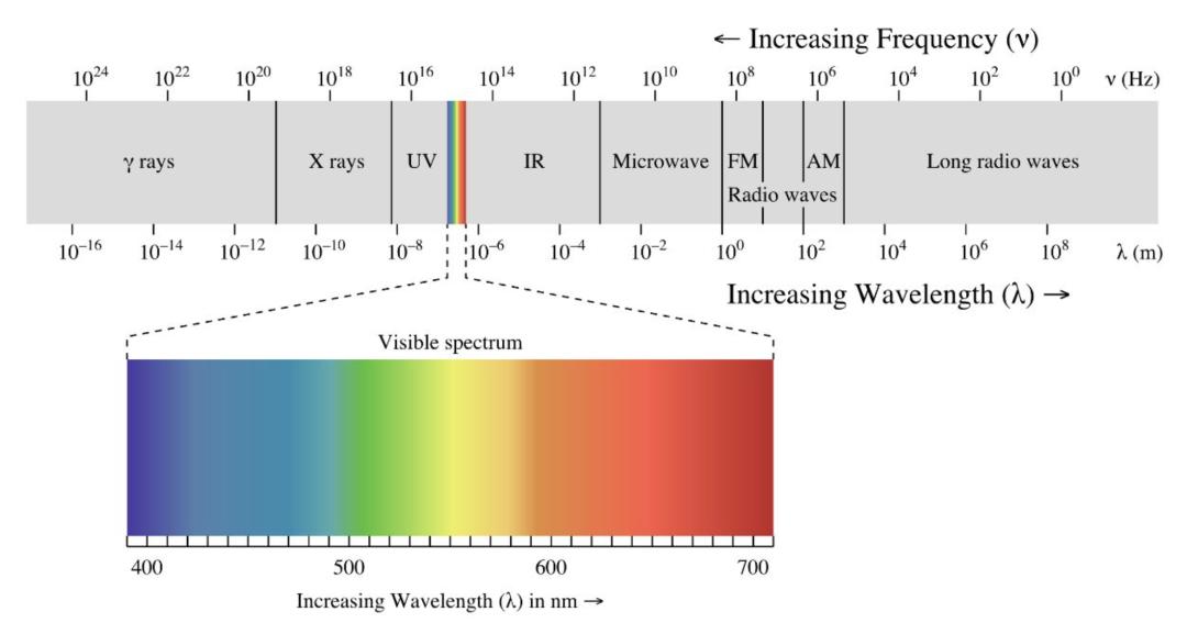 可见光只占电磁波里很小一部分. 图片来自:维基百科