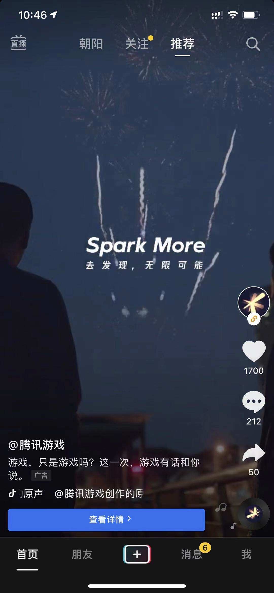 1月18日,36氪发现,腾讯游戏品牌“Spark More(去发现,无限可能)”在抖音投放了一则开屏切入短视频的最新品牌广告。