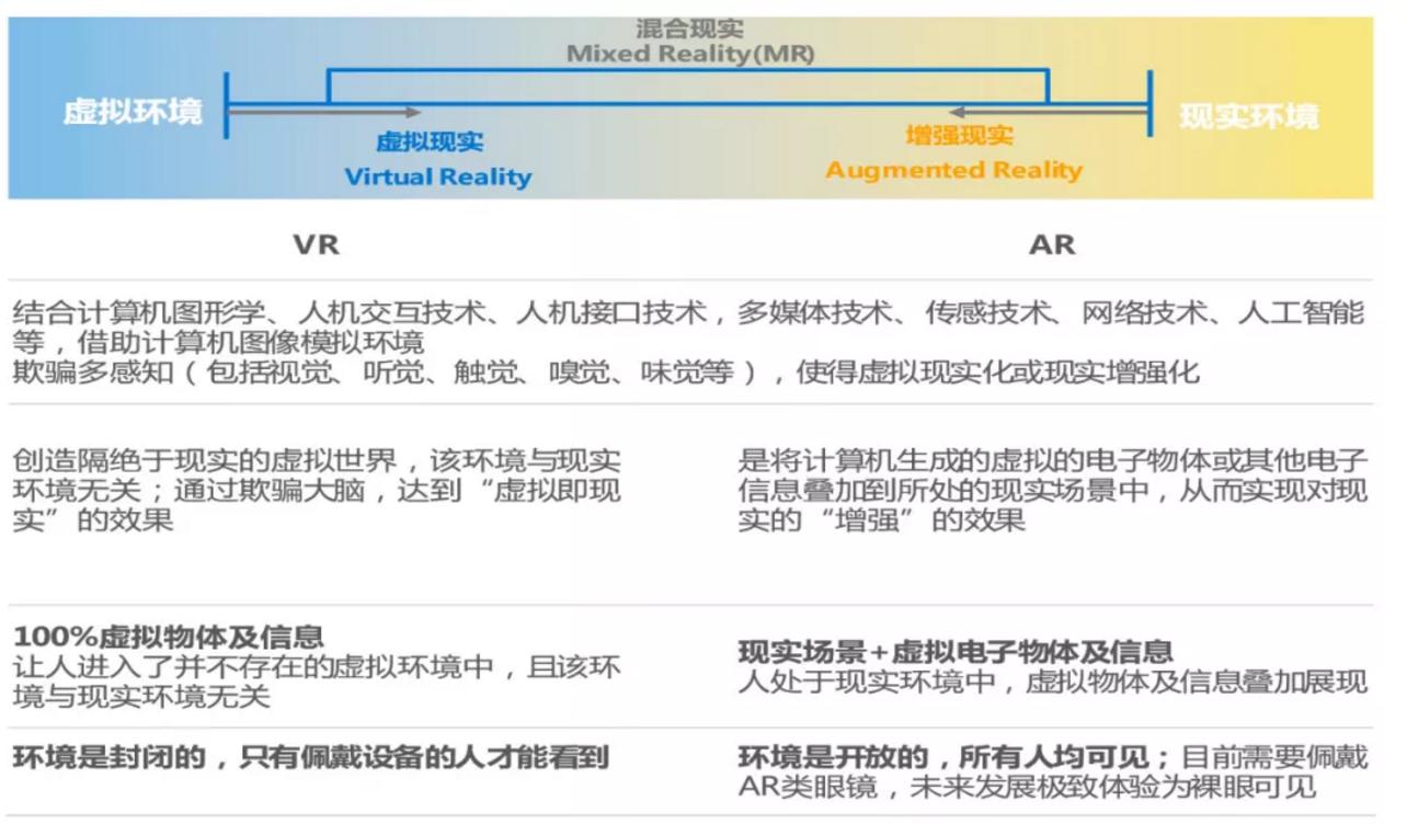 从2014年左右开始的国内AR、 VR创业潮至今,国内目前已经形成了包括硬件提供商、内容工具制造商、系统研发者、内容提供商等一整套完整的产业体系,而国内企业大部分处于内容提供商及平台搭建者的角色。