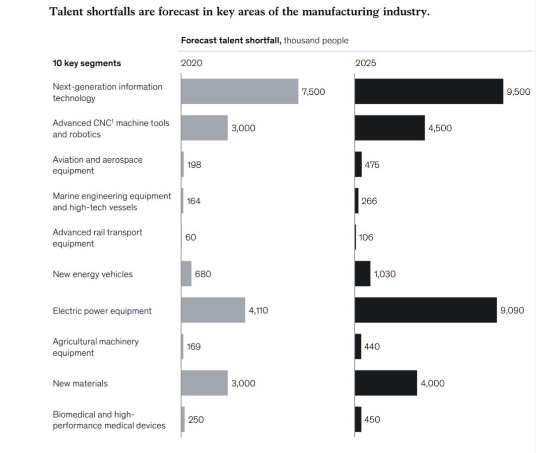 制造业关键领域的人才短缺情况。