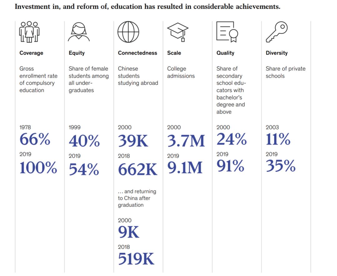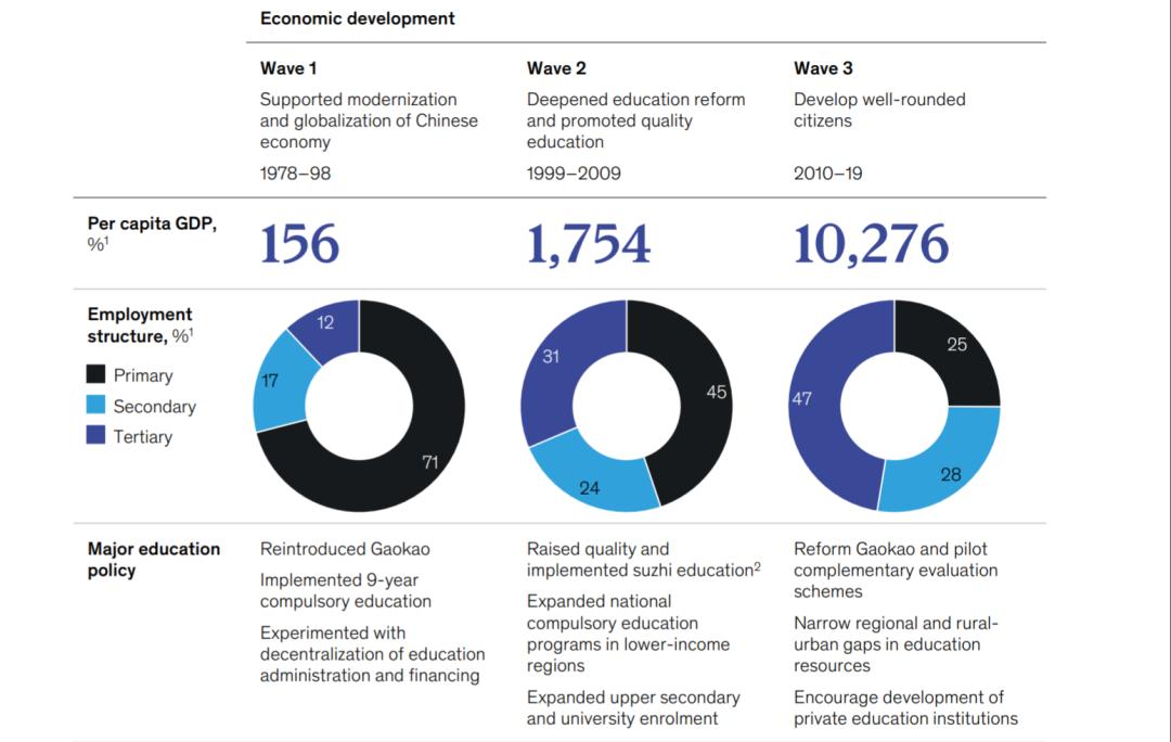 自1978年以来,中国的教育体系经历了三次变革,为经济结构转型提供了支持。