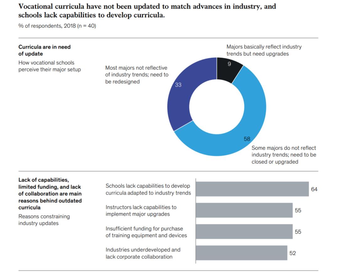 职业课程没有更新以适应工业进步,学校缺乏制定课程的能力。