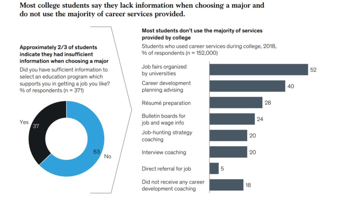 大多数大学生表示,他们在选择专业时缺乏信息,也没有充分利用提供的大部分就业服务。