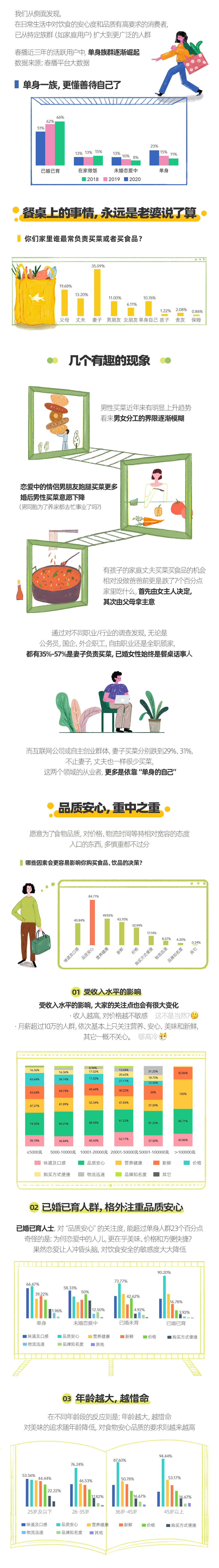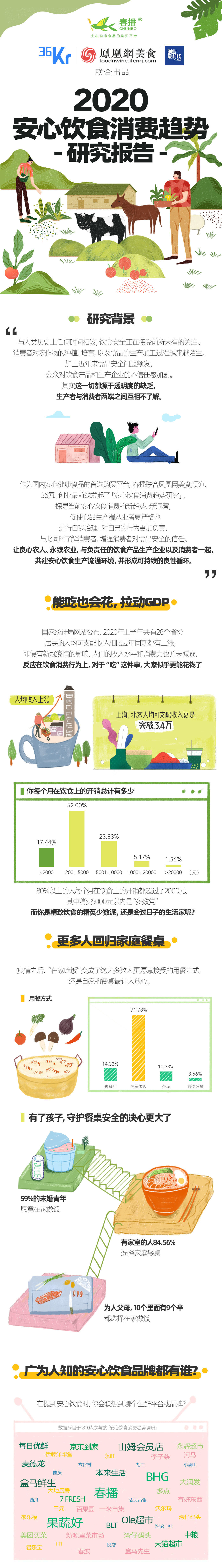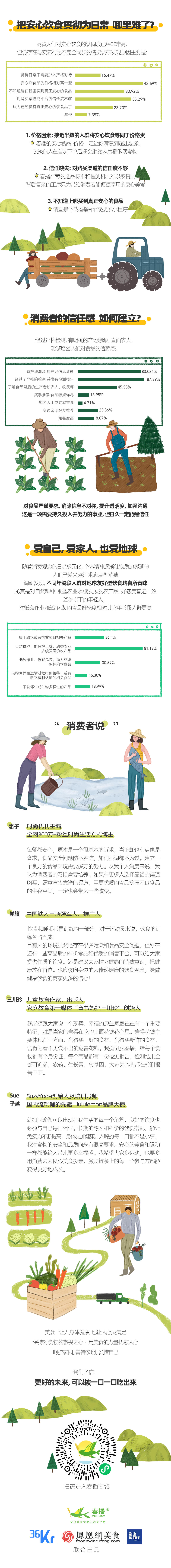 近期,春播联合“36氪”、“凤凰网美食频道”、“创业最前线”共同发起「安心饮食消费趋势研究」,探寻安心饮食消费的新趋势与新洞察,通过对各年龄、各职业人群的多方调查,依据调研分析、访谈、消费数据及行业数据等,正式发布《安心饮食消费趋势研究报告》。