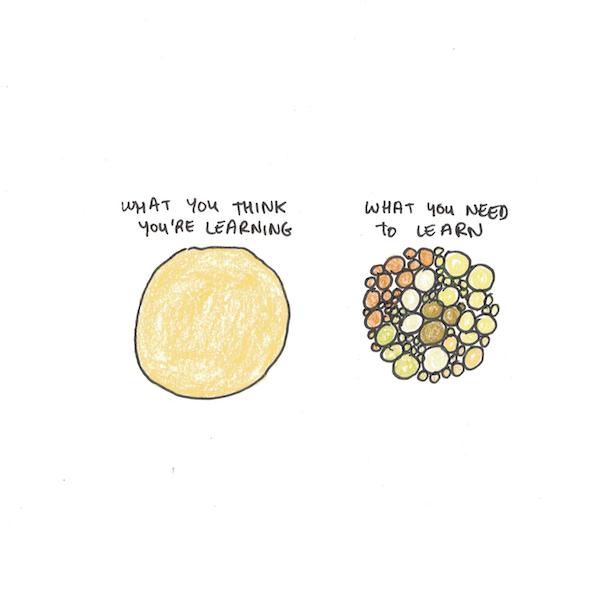 左图为我们对某一种知识的理解,它是宽泛而抽象的;右图为知识的具体形态,它是有许多细分的知识点构成的|图片来自Medium