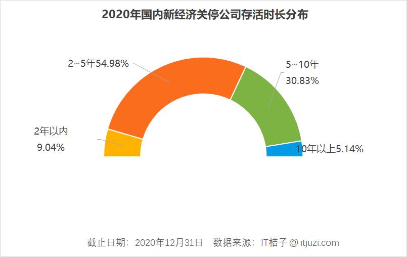 2020 年关闭的国内创业项目的平均寿命不到 5 年。