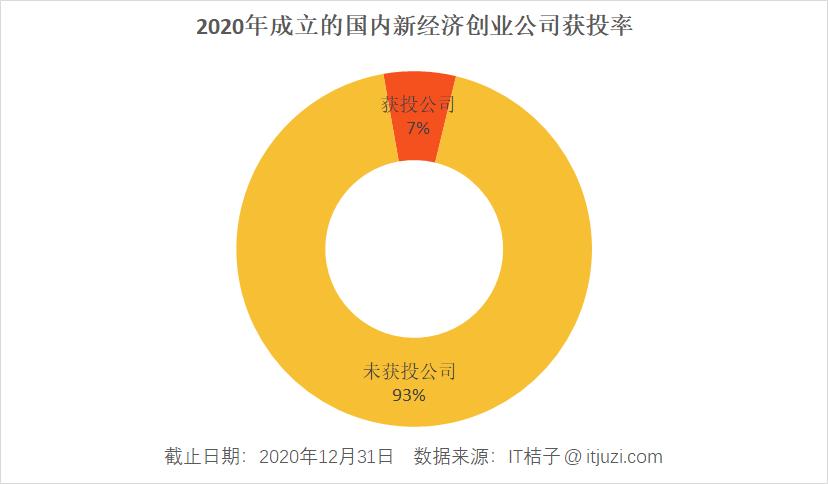 在投资人普遍缩紧对早期项目的投资时,创业公司获得投资的几率也更低。截止到 12 月 31 日,2020 年新成立的 3108 家中国新经济公司,其中有 204 家获得融资,当年获投率占比 6.56%。