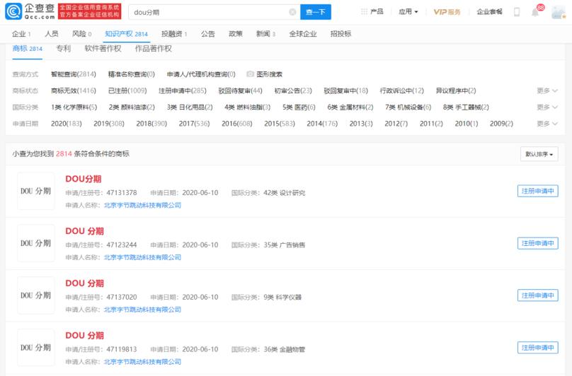 据天眼查App信息显示,北京字节跳动科技有限公司名下于去年12月新增了一项名为“抖音支付”的商标。就在去年11月字节还申请了“Doupay”商标,并在域名存储注册商“易名”旗下新增了“douyinpay.com”域名。
