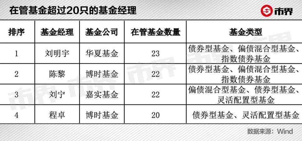 虽然产品发行不断提速,但是业内人才流失不止,公司基金经理团队“青黄不接”,一位基金经理管理多只产品的“一拖多”现象愈演愈烈。当前,基金经理管理基金数量最多的,已经达到23只。