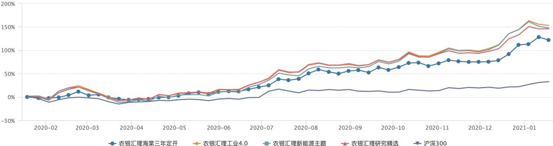 大部分的基金会在名字中透露基金的特点、风格和投向。从名字看,农银汇理的这4只产品风格差异性较大,有的是偏工业的,有的是偏新能源的,剩下两只无特定投向。