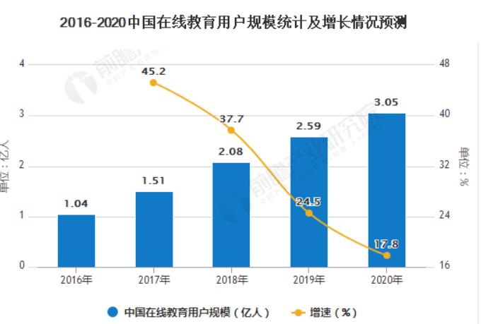 图1:在线教育增长,来源:前瞻产业研究院