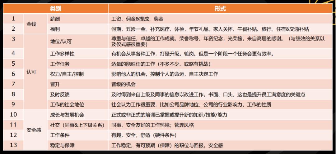 保健因素是什么?其实相当于是我们的三餐。你不吃三餐会死的。激励因素就相当于水果,你不吃没关系,但吃了以后你的满意度和生活品质会上升。但如果没有保健因素,激励因素是无法发挥作用的。