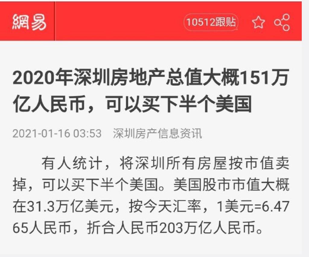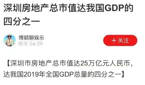 也有人说深圳房产总市值达到我国2019年GDP总量的四分之一。