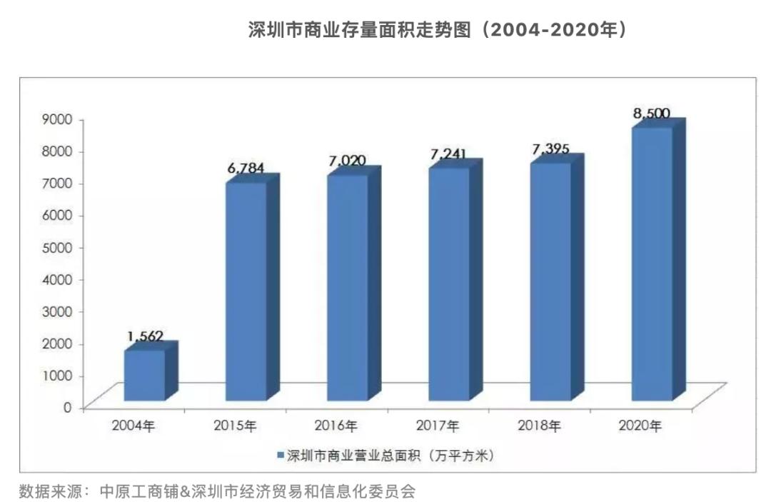 根据中原工商铺整理的数据,截止到2020年,深圳商业存量面积为8500万平方米,而商业地产分为商铺和写字楼,取一个平均价格:85176元。