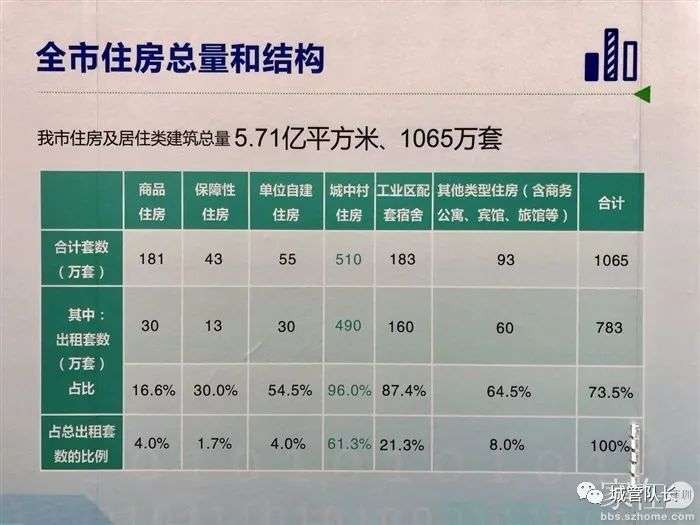 最贵的商品住宅只有189万套左右,保障房43万套,单位自建房55万套,城中村住房510万套,工业区配套宿舍183万套,其他类型的大约93万套。