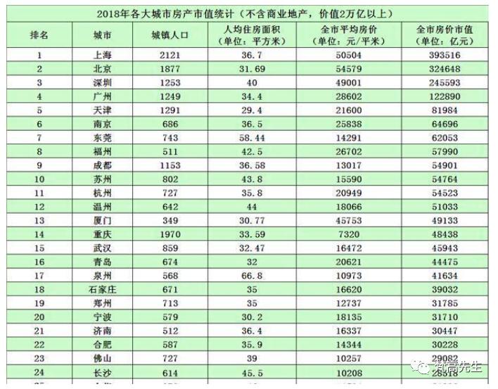 下图是2018年全国各大城市的房产市值统计,这个排名其实和各大城市综合实力排名相似,即便过了两年,相信这个排名的顺序变化也不大。
