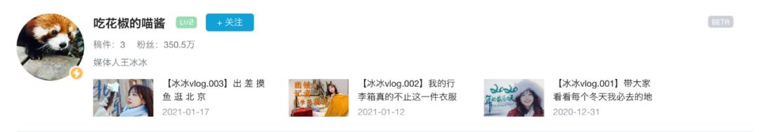 最近,王冰冰以“吃花椒的喵酱”为ID入驻B站,分享了一条五分多钟的vlog,带大家看了每年冬天的工作地点和并介绍了工作内容和目的,这冰冰的B站账号一开通就刷新了B站破百万的增粉速度,一句“大家好,我是王冰冰,真以为我不上B站么?”的视频简介,在短时间内就获得大量的关注度,连B站老板都前排留言,这惊人的播放量增长速度。