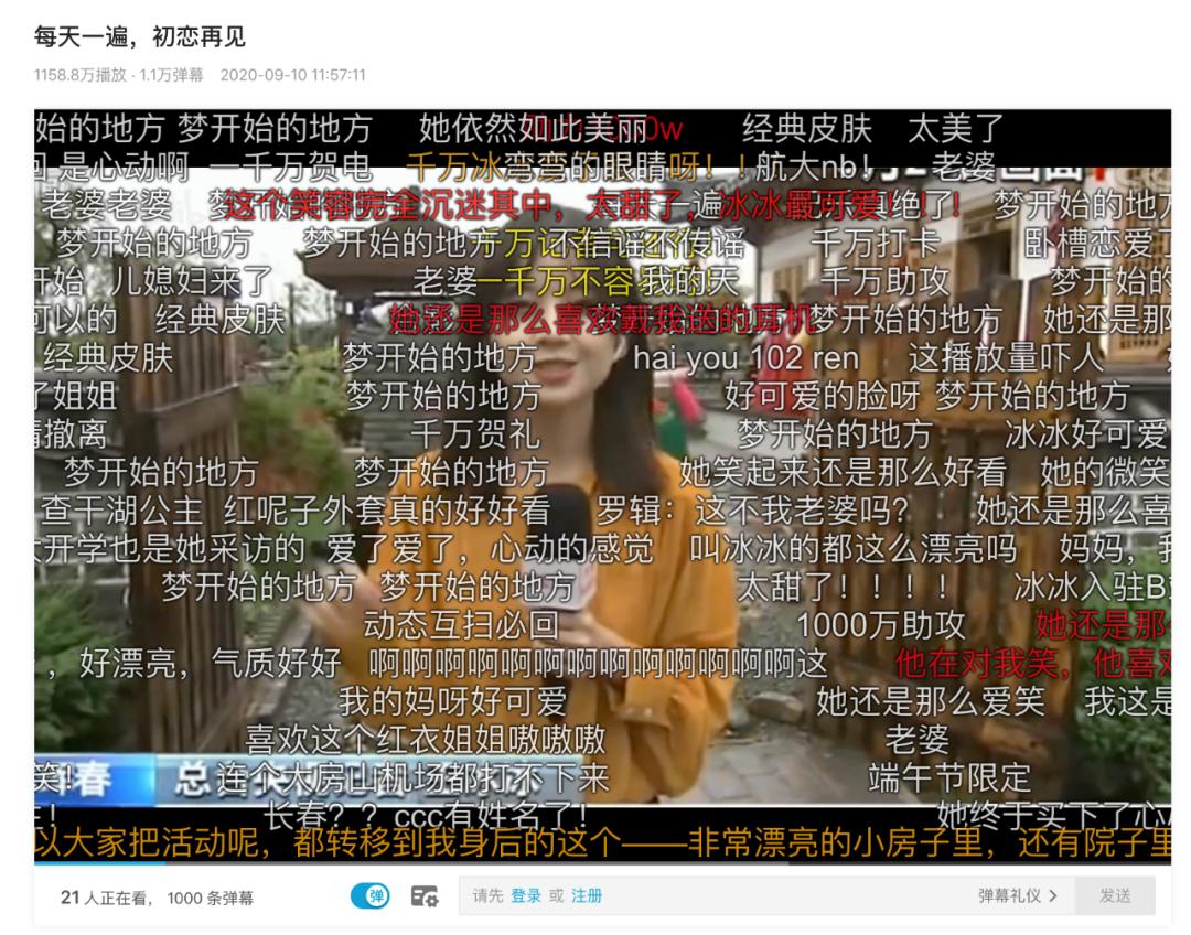 这个梗的起源是去年9月份,一个UP主做了冰冰的新闻报道合辑并且取了一个很有意思的名字,叫做《每天一遍,初恋再见》,没想到,这个视频在B站火了。到目前为止有千万级的播放量,上万条弹幕,很多网友称这则视频是“梦开始的地方”。