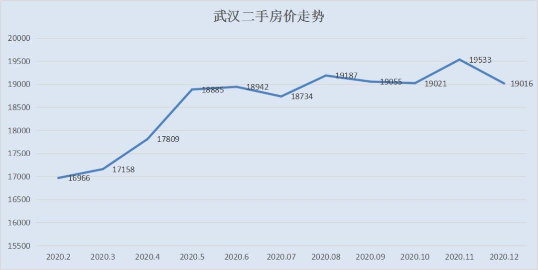 二手房均价总体上涨,从2月的1.7万左右,到12月的1.9万,总体涨幅11.7%,要知道这是吃大锅饭的数据,也是武汉在疫情冲击下的数据。