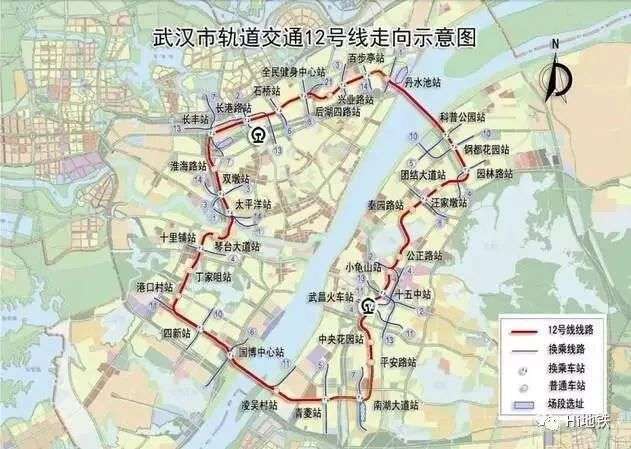 另外一条是首条环城地铁12号线全线开工,将会串联硚口、江汉、江岸、青山、洪山、武昌及汉阳共7个中心城区。