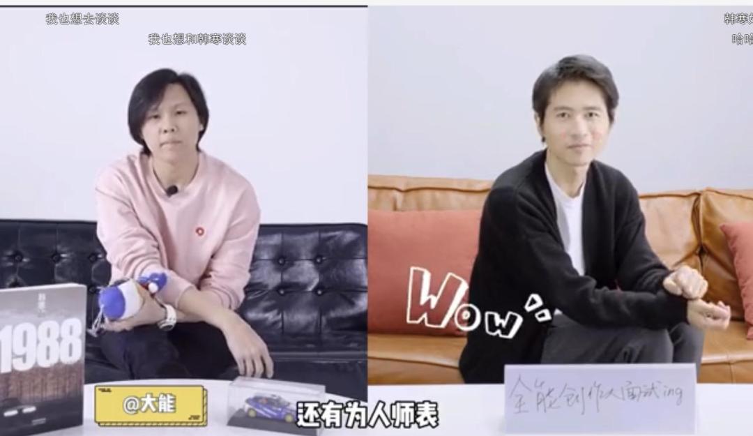 “创作人集体面试韩寒,看他能过第几关?” 西瓜视频官方发布互动预热视频里,韩寒坐在沙发上,面前的桌牌是手写的“全能创作人面试ing”。