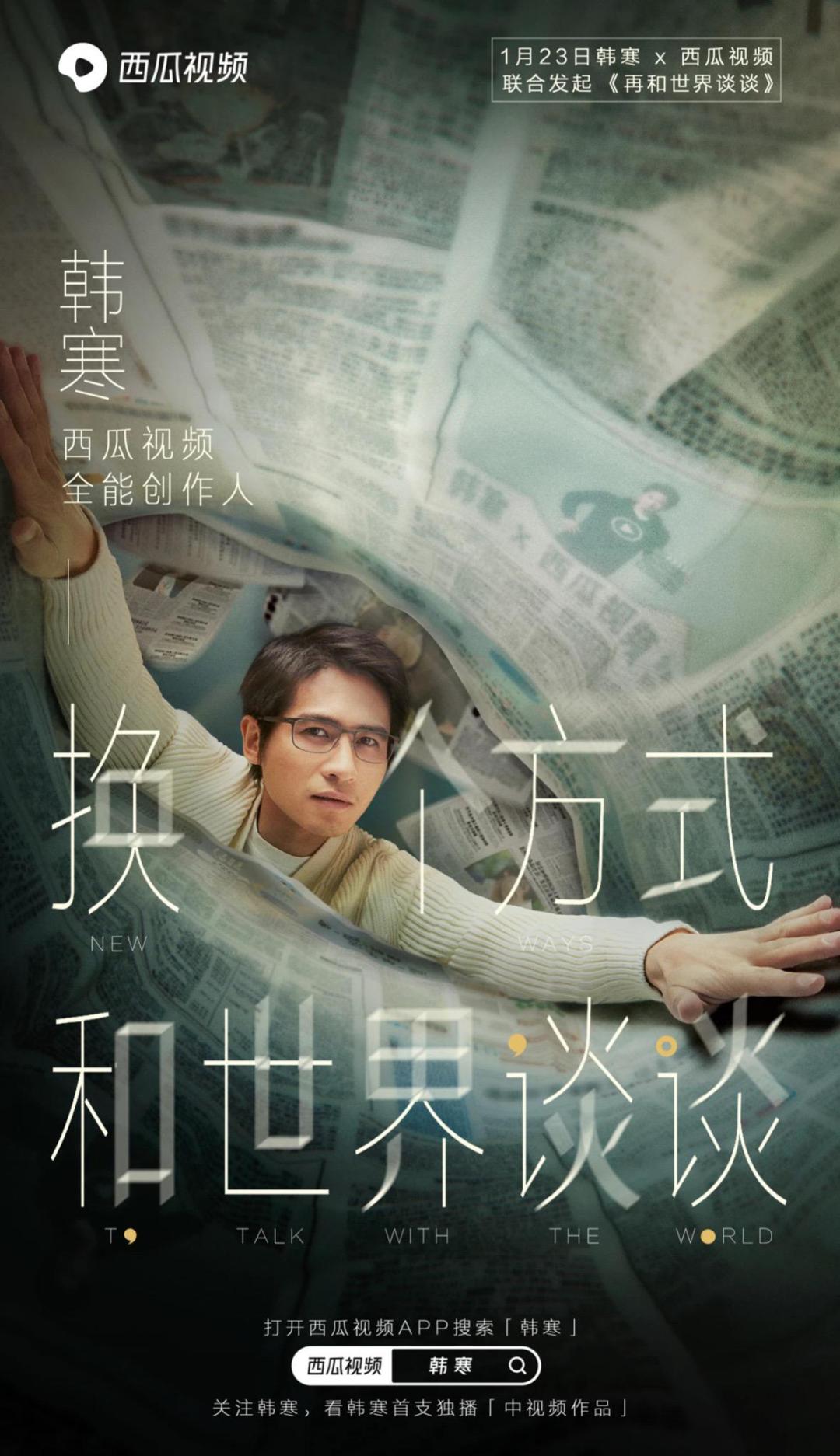 西瓜视频给韩寒的名号是“全能创作人”,二者将联合发起一个“再和世界谈谈”的专栏,1月23日将正式上线。
