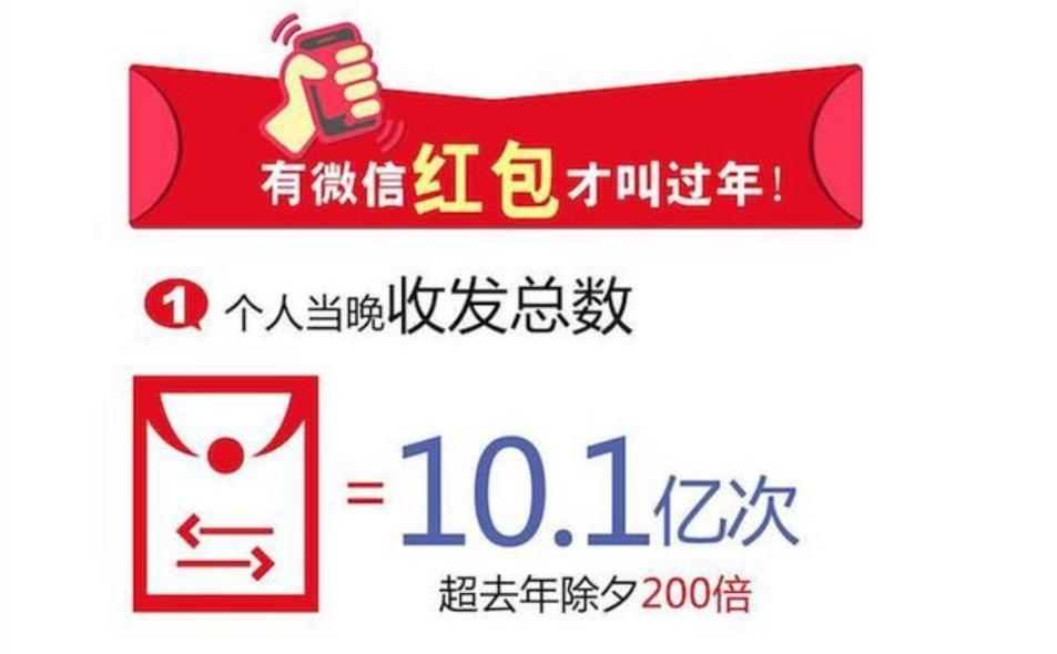 以第一个与春晚新媒体互动的微信支付来说,根据官方数据显示,在这年春晚播出期间,微信互动总次数超过110亿次,其中巅峰时段更是达到8.1亿次每分钟,而当晚微信红包个人收发总数达10.1亿次,超过前一年除夕200倍。