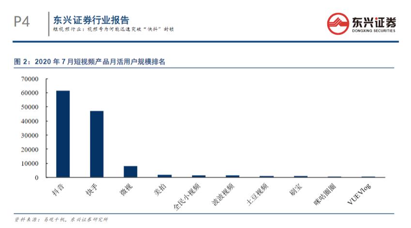 2020年7月,微视在短视频产品月活中排在第三,但与前两名抖音、快手已经不在一个规模等级。