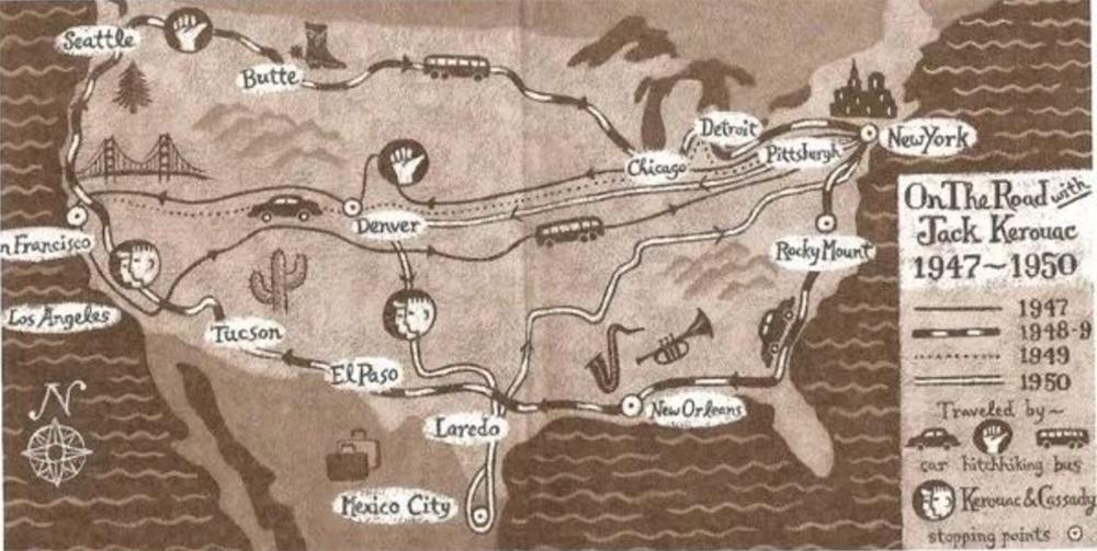▲Jack Kerouac在1948-1950年横穿美国,并创作了《在路上》